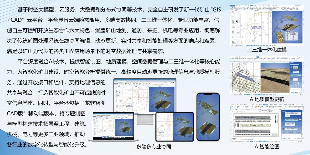 龍軟智圖作為公司自主研發(fā)的核心產(chǎn)品,已實現(xiàn)對國外同類軟件的進口替代,成為國內(nèi)煤炭行業(yè)重要的基礎(chǔ)工業(yè)軟件。目前已在超過80%的國有大中型礦井應(yīng)用,累計服務(wù)1800余家單位。為更好地賦能行業(yè)人才培養(yǎng),龍軟科技計劃在全國煤炭行業(yè)現(xiàn)代遠(yuǎn)程教育培訓(xùn)網(wǎng)發(fā)布最新版龍軟智圖,供廣大學(xué)員免費學(xué)習(xí)。同時,也將向各礦山企業(yè)培訓(xùn)部門、相關(guān)高校免費授權(quán)使用,助力行業(yè)構(gòu)建更普惠、高效的培訓(xùn)工具生態(tài)。